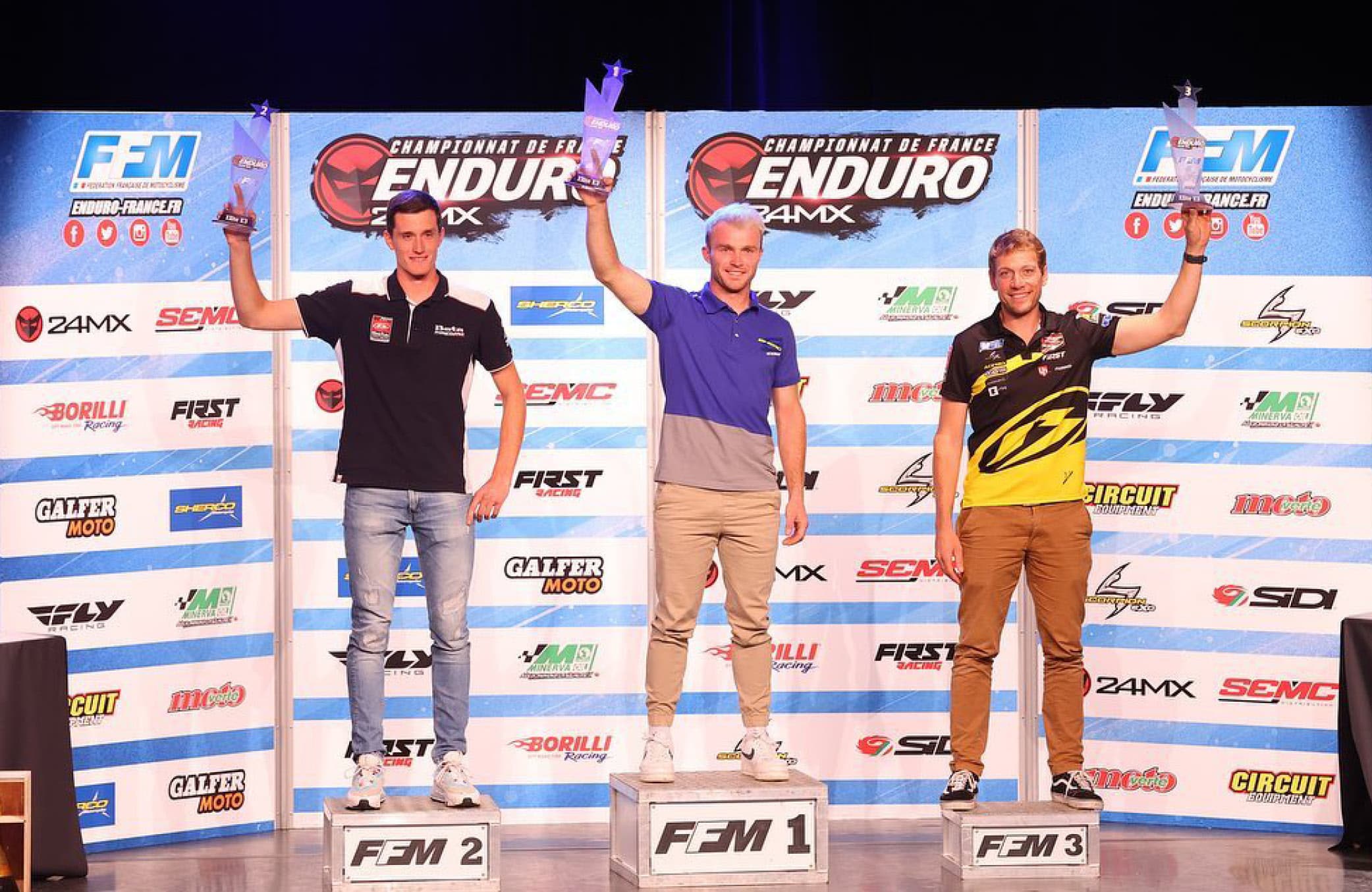 Pour notre première participation au CHAMPIONNAT DE FRANCE ENDURO nous avons été gâtés. La saison 2022 a été couronnée de succès et les pilotes qui portaient nos marques ont gravi les podiums !