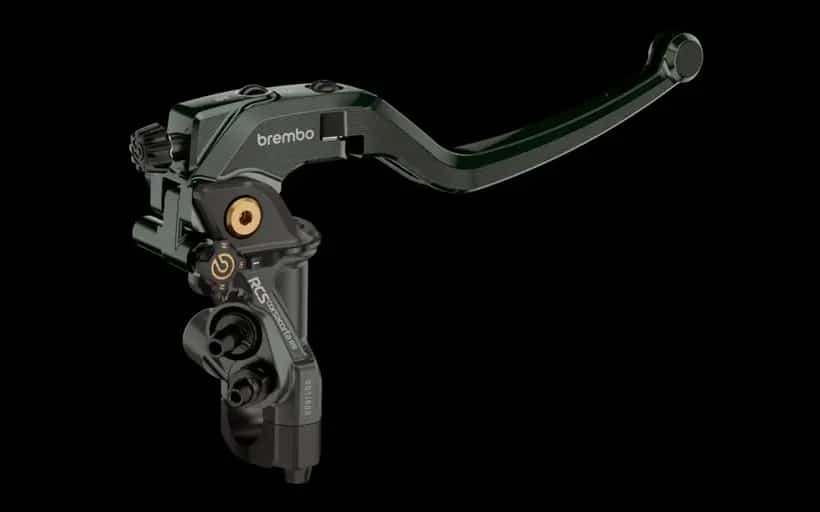 Le nouveau 17RCS CORSA CORTA RR de Brembo intègre également le système RCS (Ratio Click System) introduit il y a 15 ans sur le maître-cylindre radial Brembo 19RCS. Ainsi, le pilote peut sélectionner une distance entre le point d’appui et le piston de 18 ou 20 mm en tournant simplement la vis de réglage située à l’avant du levier de guidage de 180° avec un tournevis. Le système utilise une came (couleur rouge lorsqu’elle est positionnés sur 18 mm, noire sur 20 mm) qui décale de 2 millimètres la distance entre le point d’appui et le point de contact avec la tige du maître-cylindre. Cela permet de modifier la distribution de la force de freinage sans altérer les performances du système en termes de puissance pure.