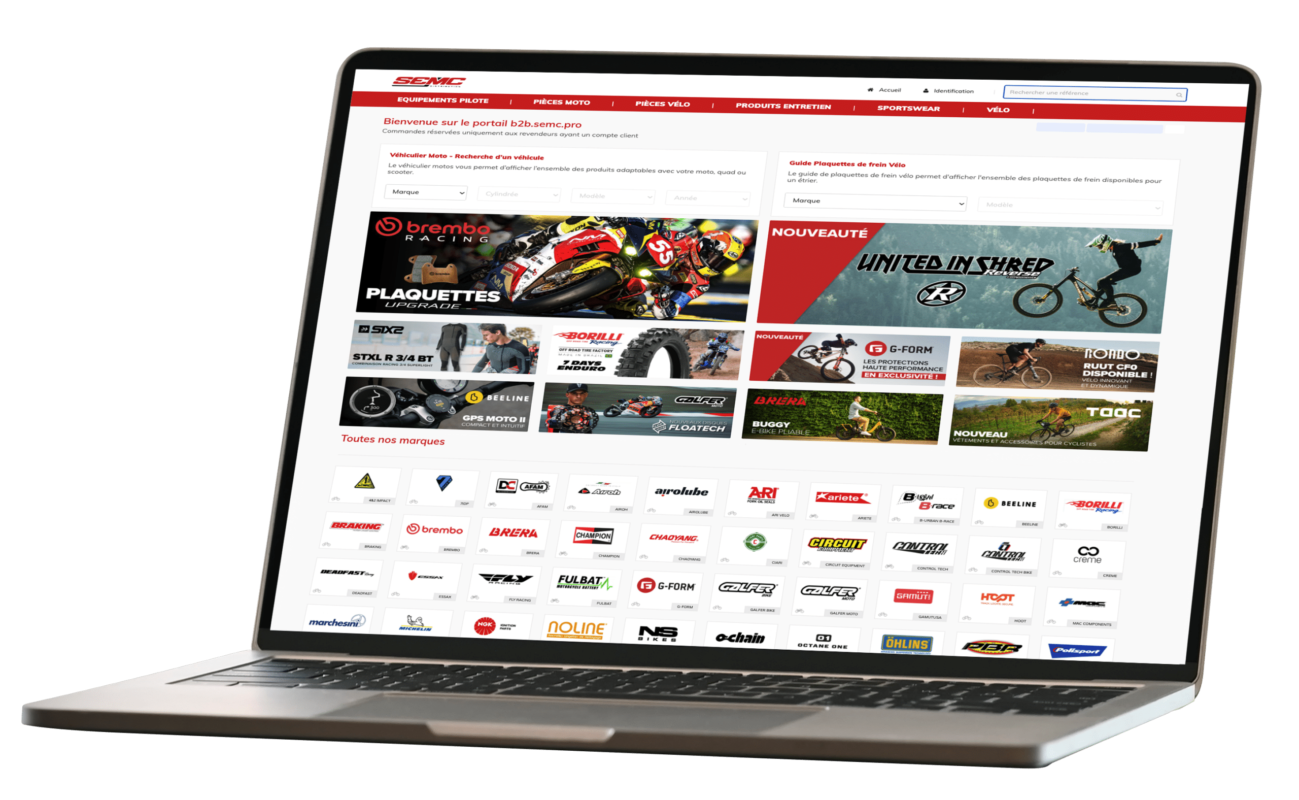 La SEMC est une société de distribution basée en France, commercialisant des pièces moto et vélo ainsi que de l’équipement pilote, au sein de réseaux spécialisés.